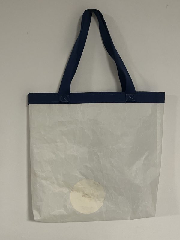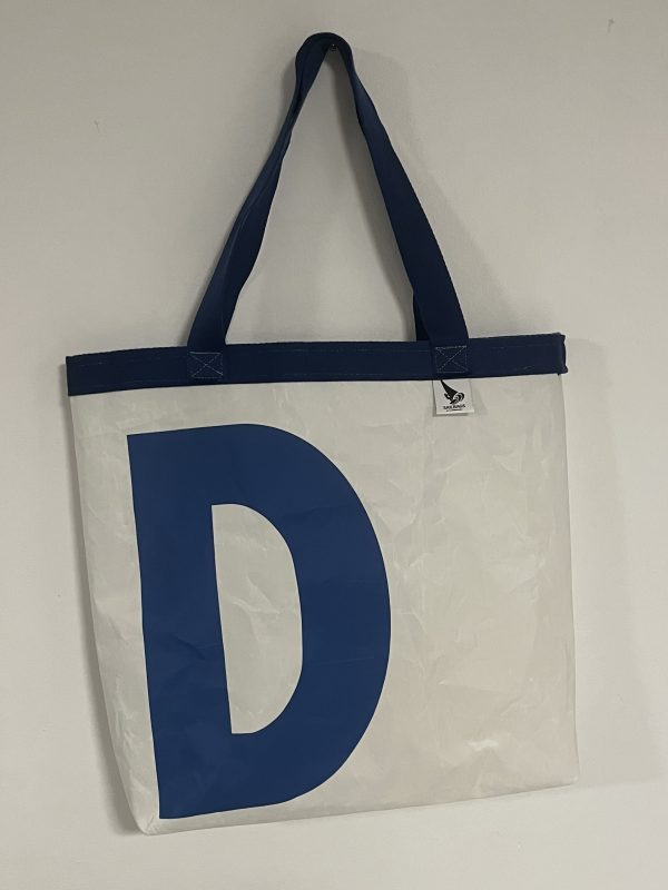 Sailbag syet af aflagt jolle-sejl med D og en solid blå bomuldshank.